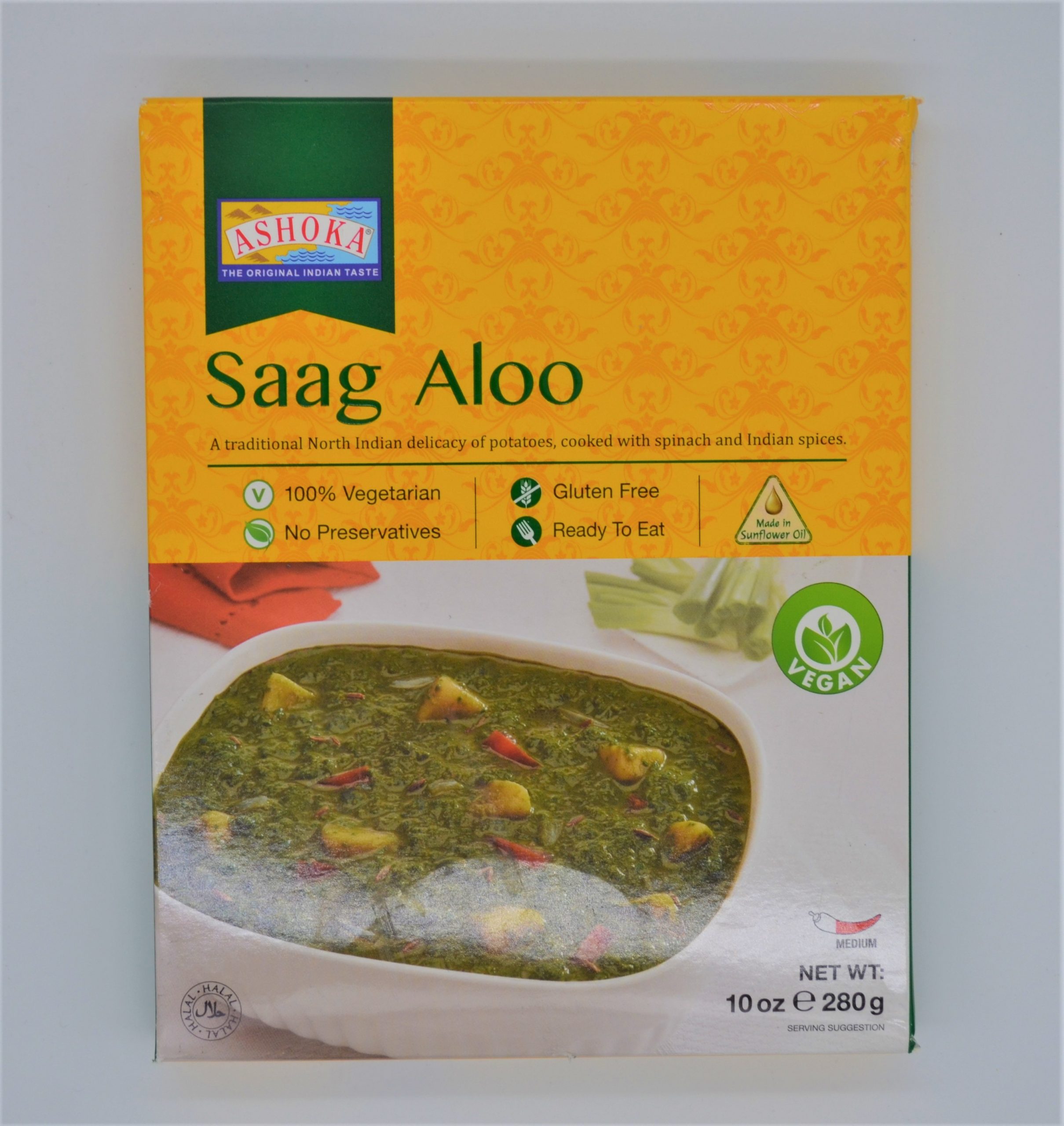 Ashoka, The Worlds Leading Ethnic Indian Foods Brand Brings To You A Complete Range Of Ready To Eat Indian Delicacies. Ashoka Saag Aloo A Popular North Indian Dish, Relished For Its Great Taste And Is Made With A Combination Of Potatoes, Cooked With Spinach And Spices. This Dish Is Ideally Served With Naan Breads, Chapatis Or Rotis