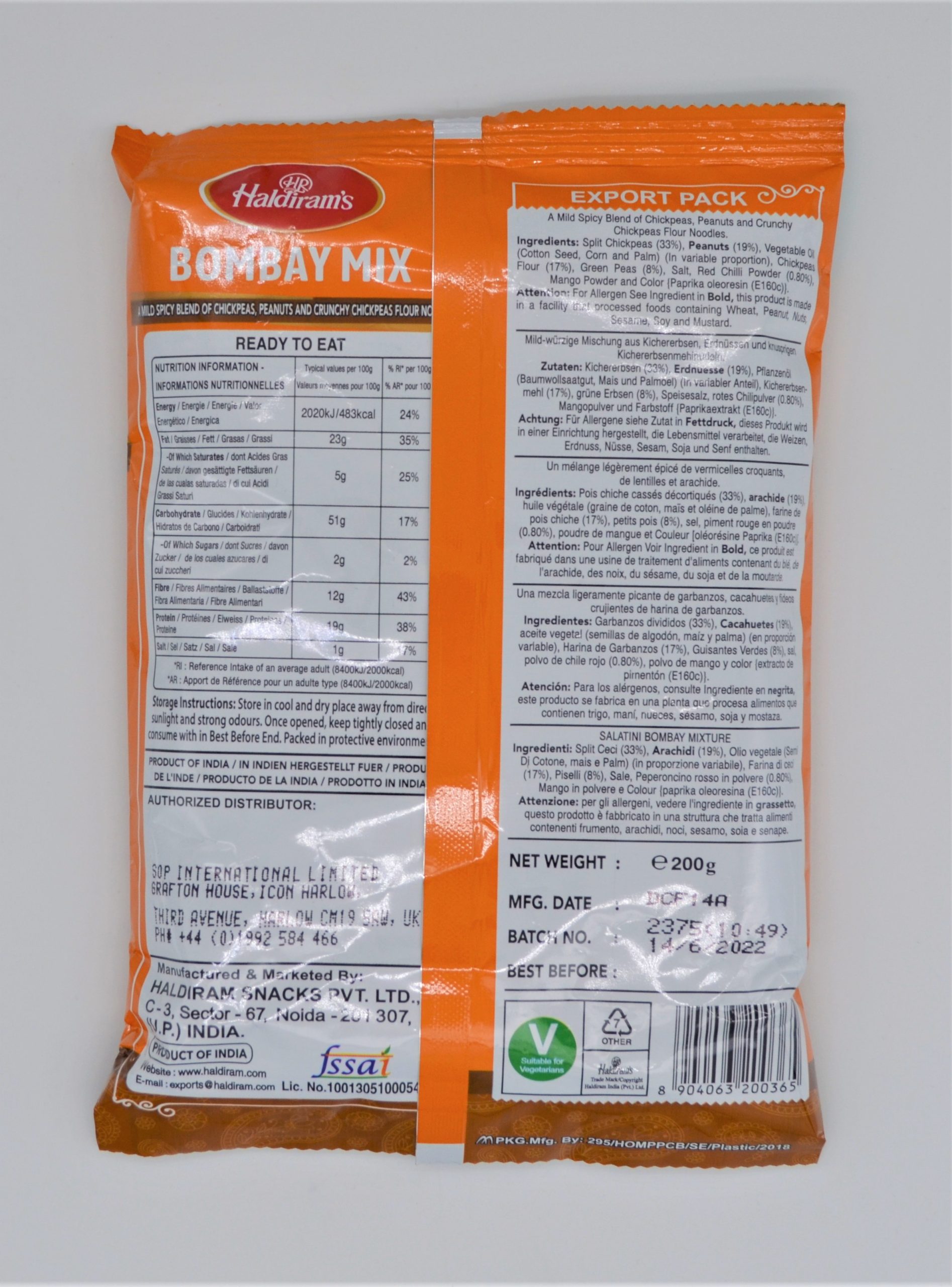 Haldiram’s Bombay Mixture. The Classic Mix Of Mild Spicy Crisp Chick Pea Noodles, Lentils And Peanuts.