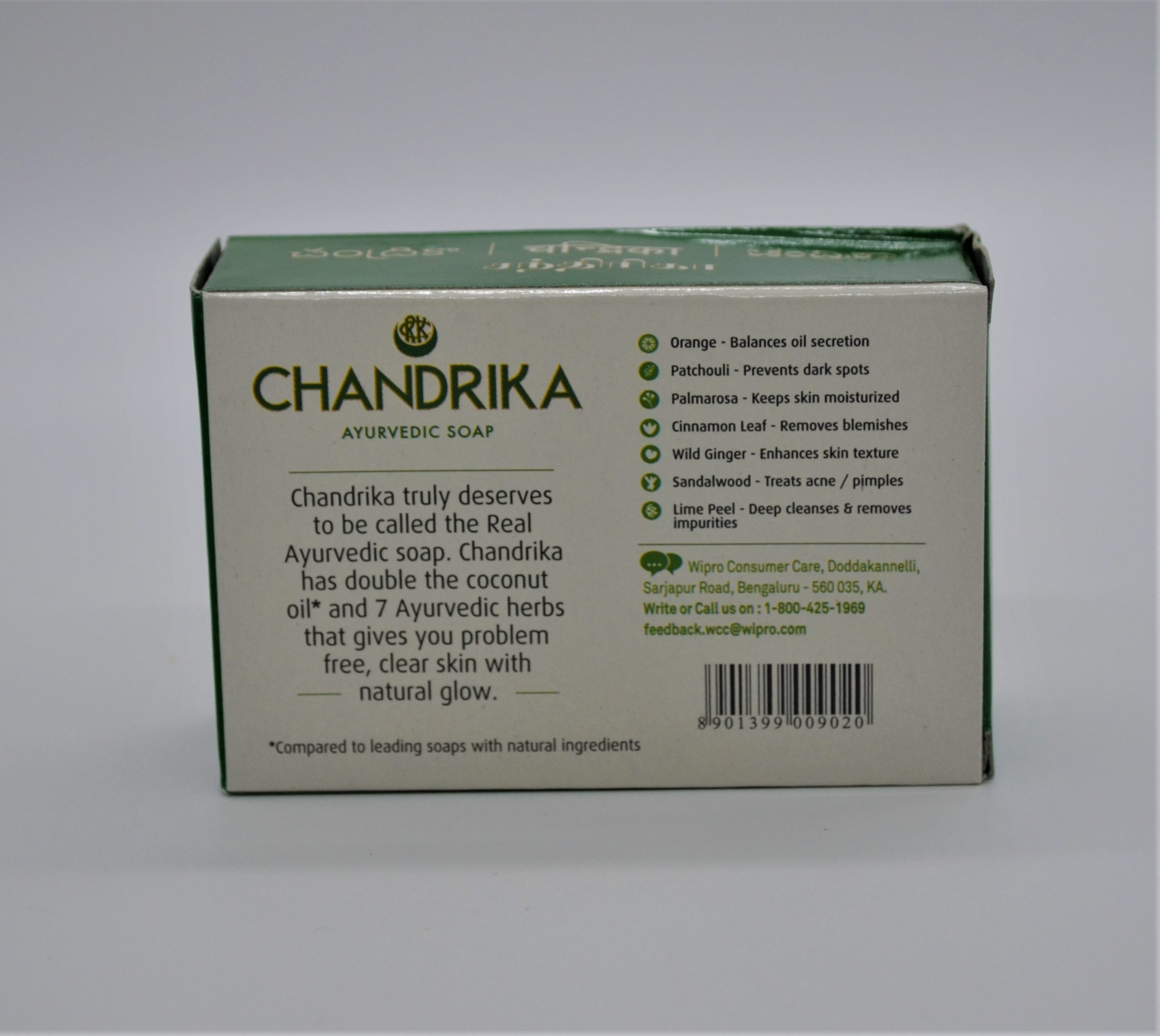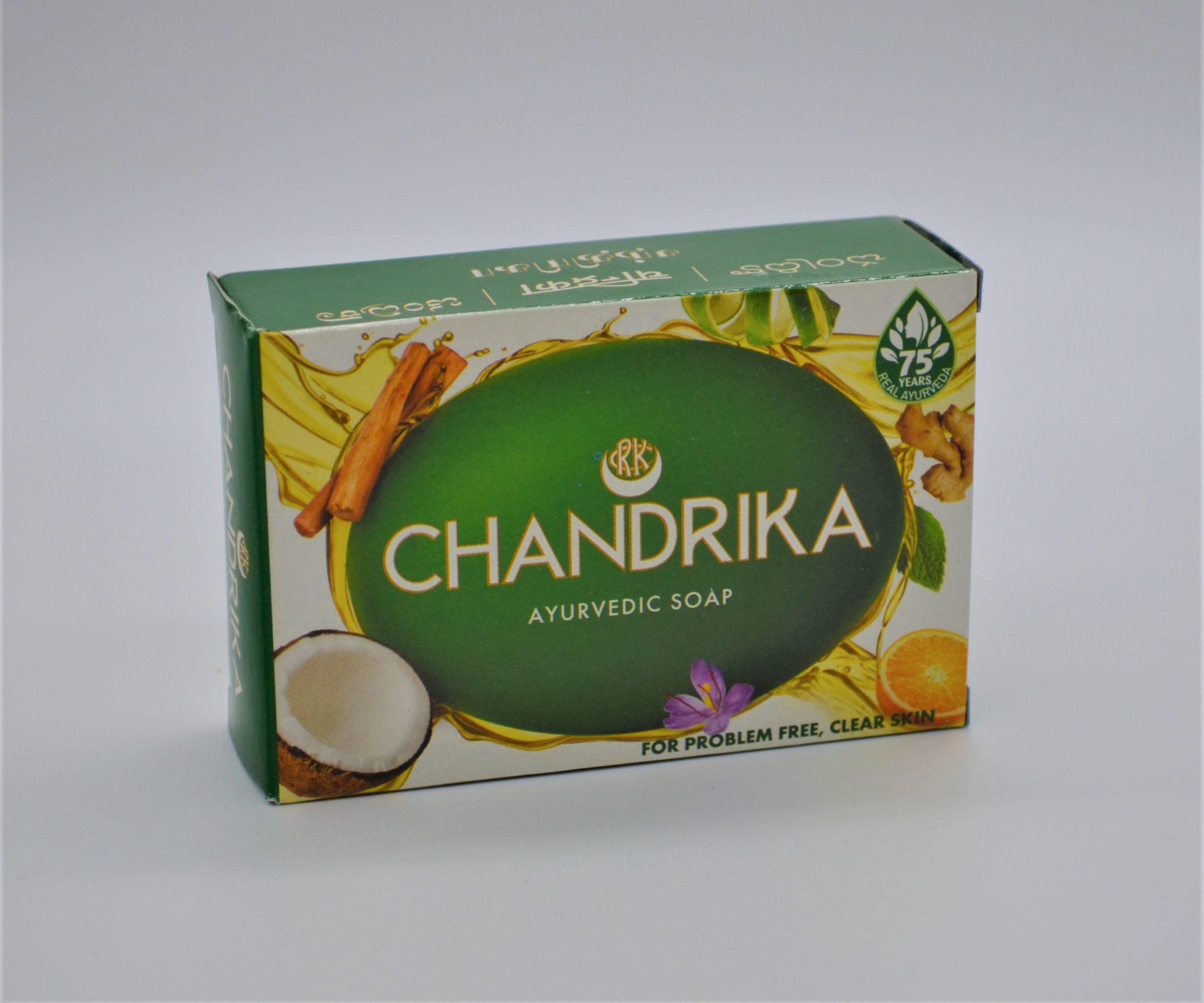 Original Chandrika Hand Made Soap With Its Unique Ayurvedic Formulation And 7 Essential Oils. Chandrika Soap Keeps Your Skin Healthy And Beautiful. It Has Active Ingredients Like Lemon Oil, Patchouli Oil And Orange Oil That Deep Cleanses, Nourishes And Moisturizes Your Skin To Make It Soft And Glowing. Chandrika Truly Deserves To be Called The Real Ayurvedic Soap.