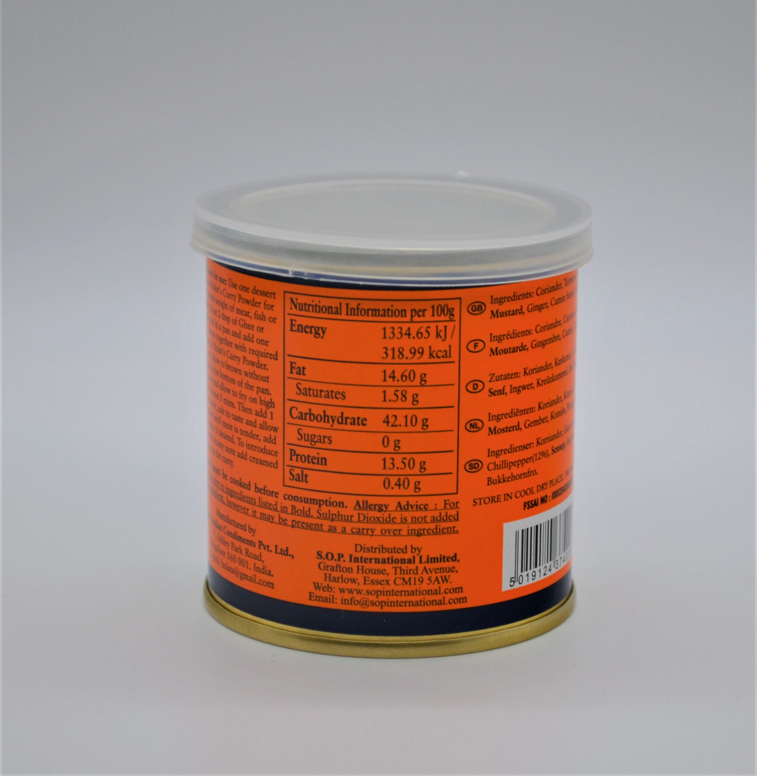 Ingredients: Coriander, Turmeric, Mustard, Chillies (12%), Ginger, Cumin Seeds, Fenugreek
