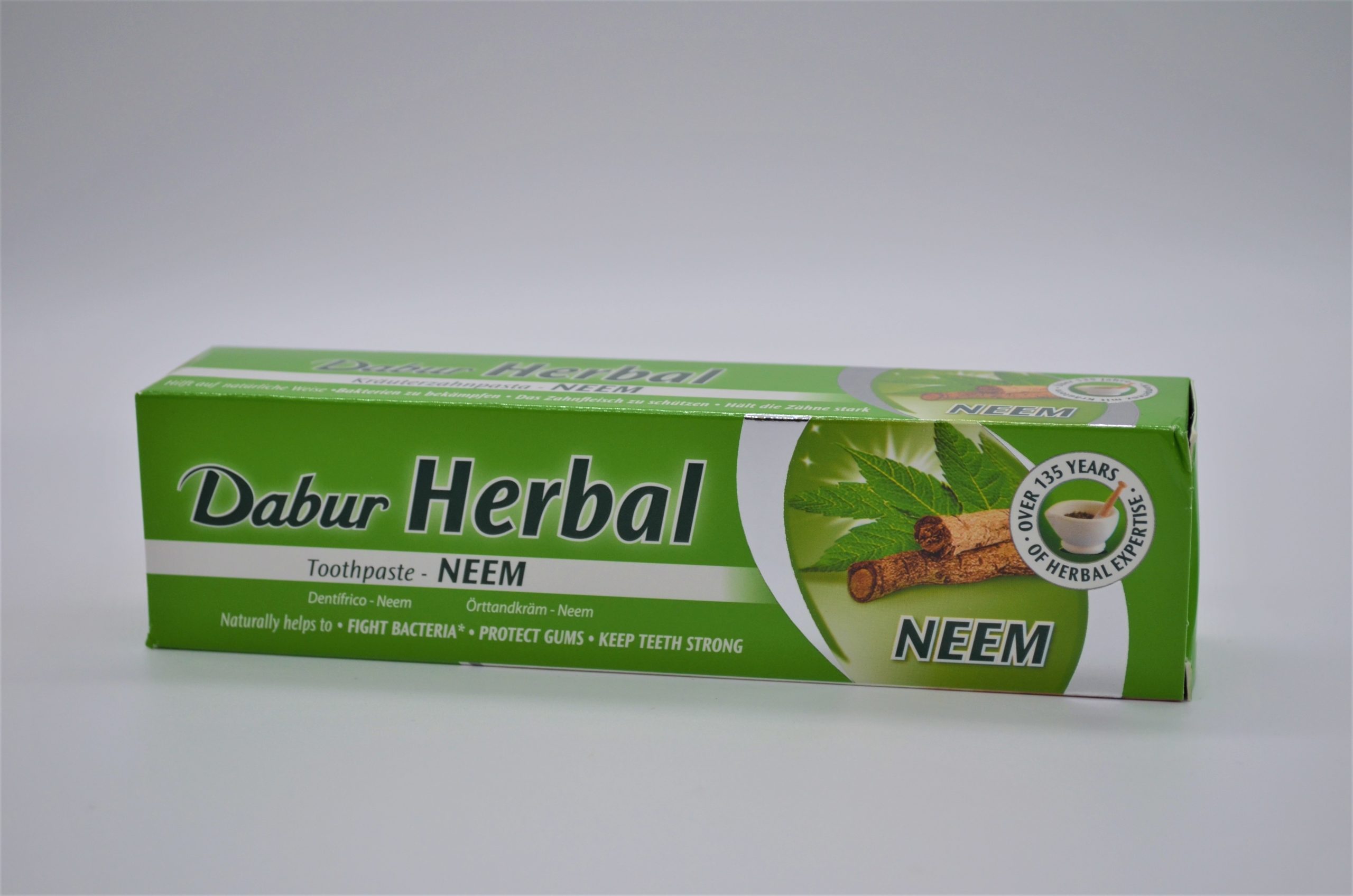 Dabur Herbal Toothpaste – NEEM is enriched with a unique blend of nature’s finest teeth and gum protecting ingredients like Neem, natural Calcium and Lotus bark. Neem, a natural antibacterial ingredient is widely known to protect against odour causing bacteria. *Regular brushing with Dabur Herbal Toothpaste – NEEM helps to protect teeth against bacteria, promote healthy gums and strong teeth.