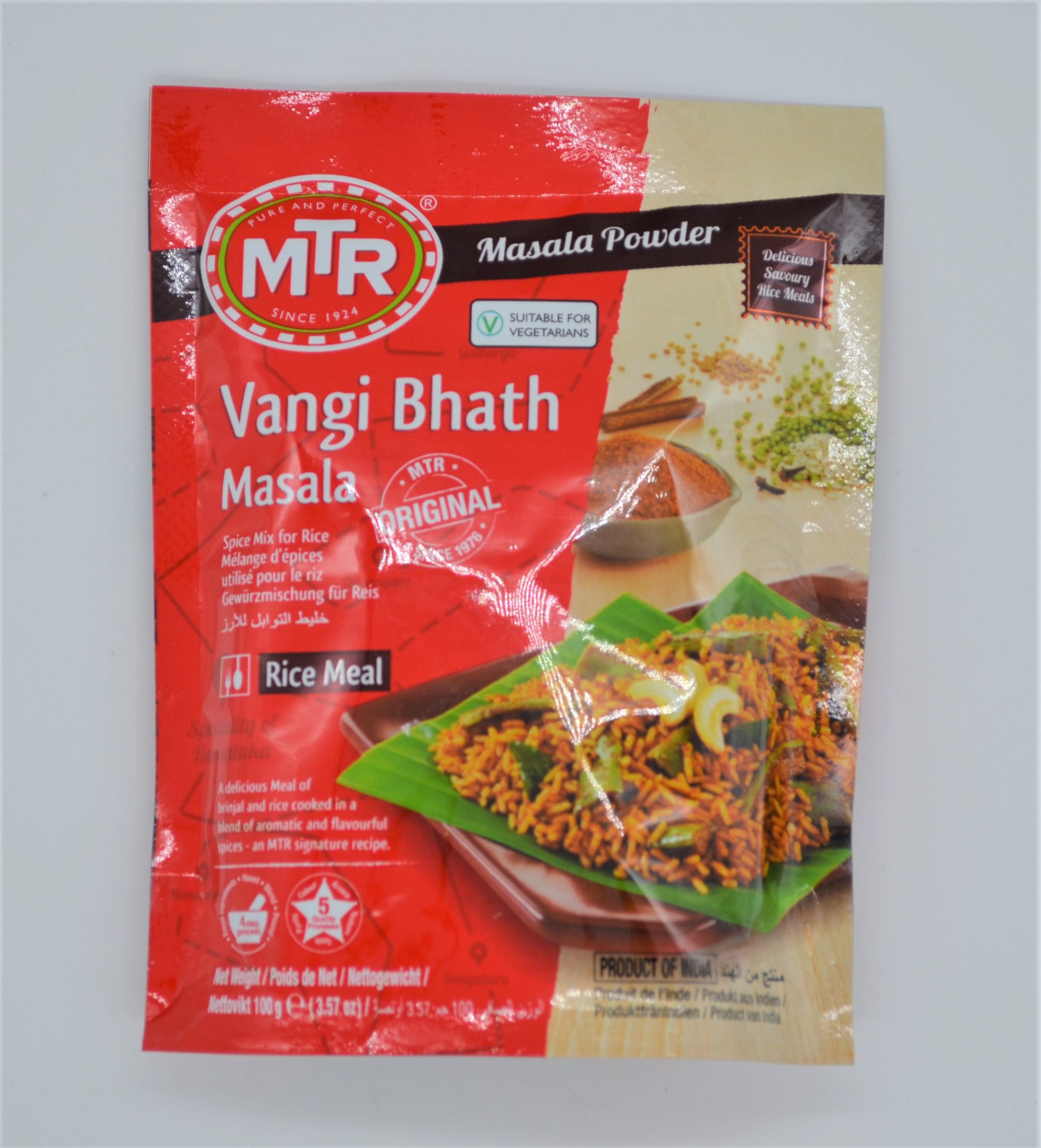 MTR Vangi Bhath (Aubergine Rice) masala. On your table is yet another signature dish from the kitchens of Karnataka – a sumptuous traditional meal of Aubergine and rice.