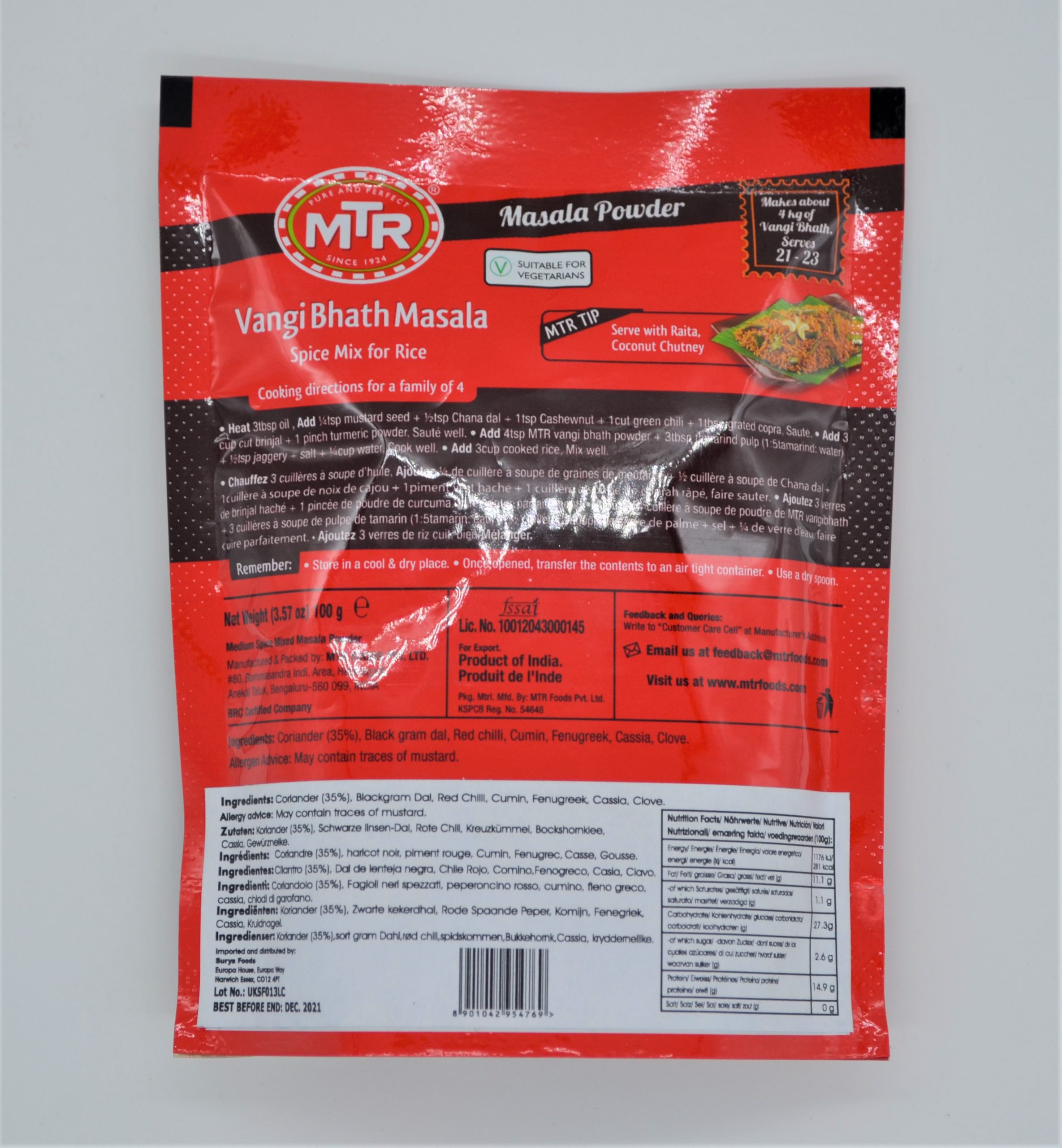 Manufactured By: MTR Foods PVT Ltd< Bengaluru, India