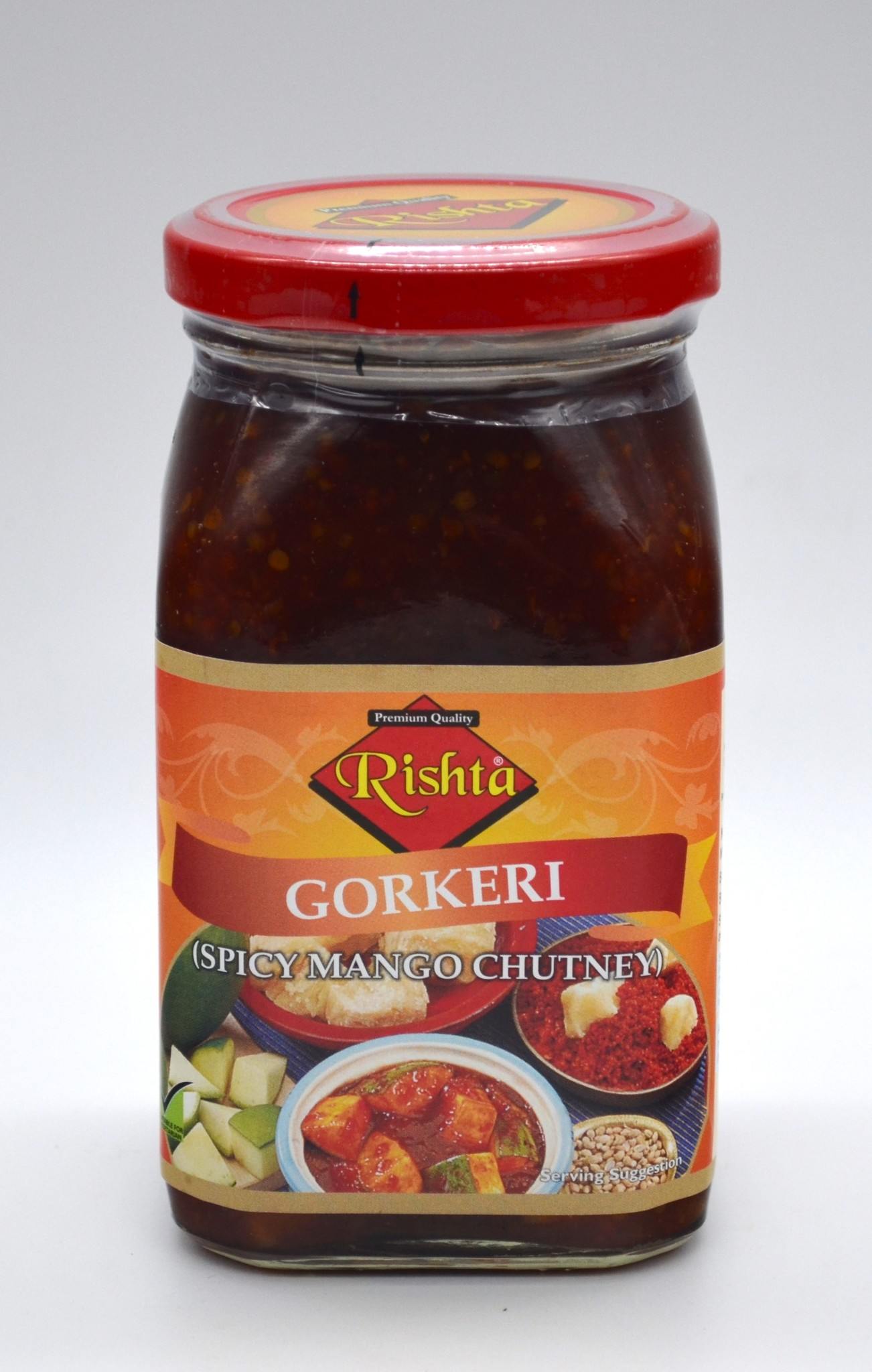 Ingredients: Mango, Sugar, Jaggery, Salt, Corn Oil, Fenugreek, Mustard, Turmeric, Red Chilli Powder, Coriander, Asafoetida, Citric Acid E330, Sodium Benzoate E211.