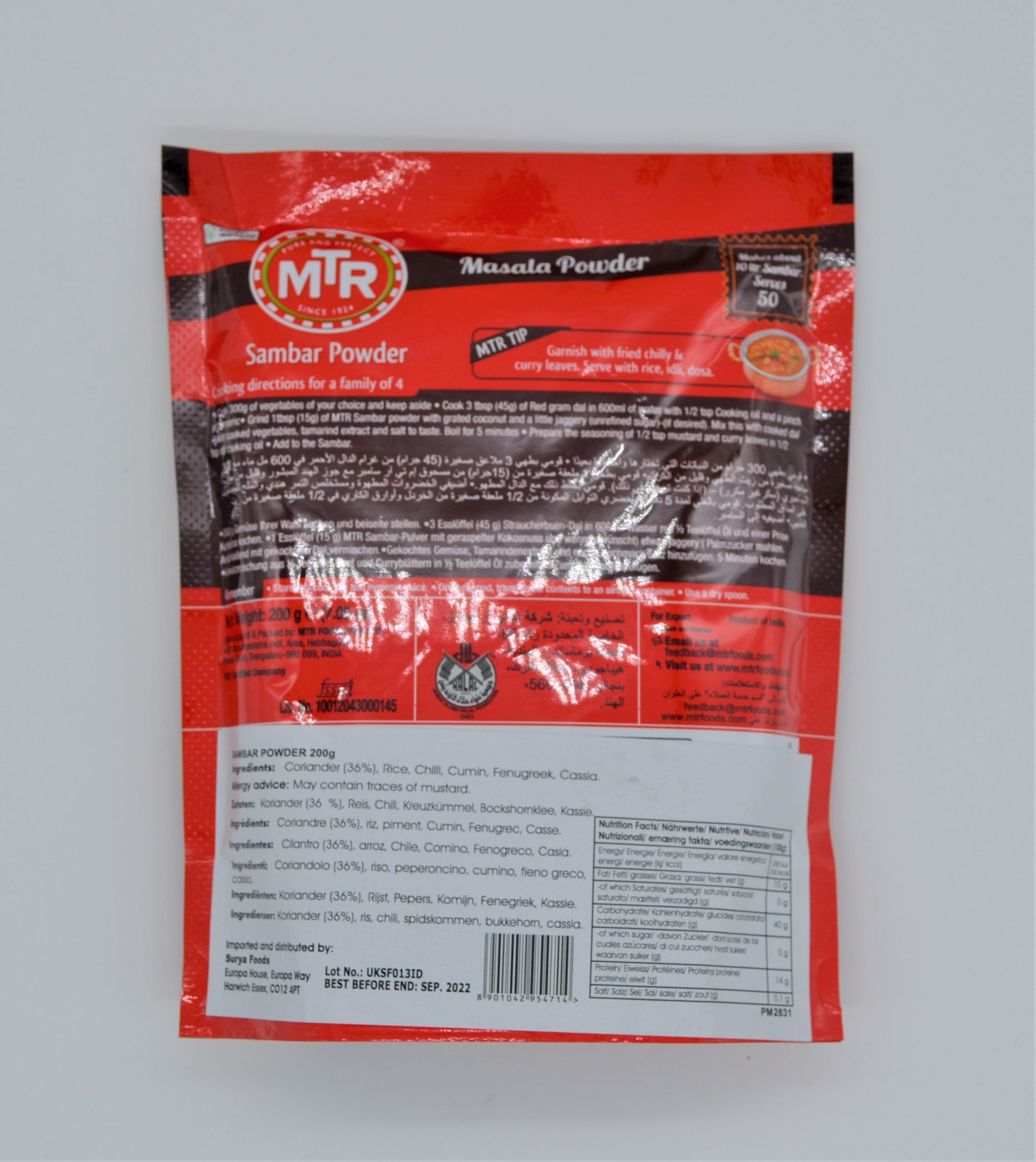 Manufactured By: MTR Foods PVT Ltd, Bengaluru, India