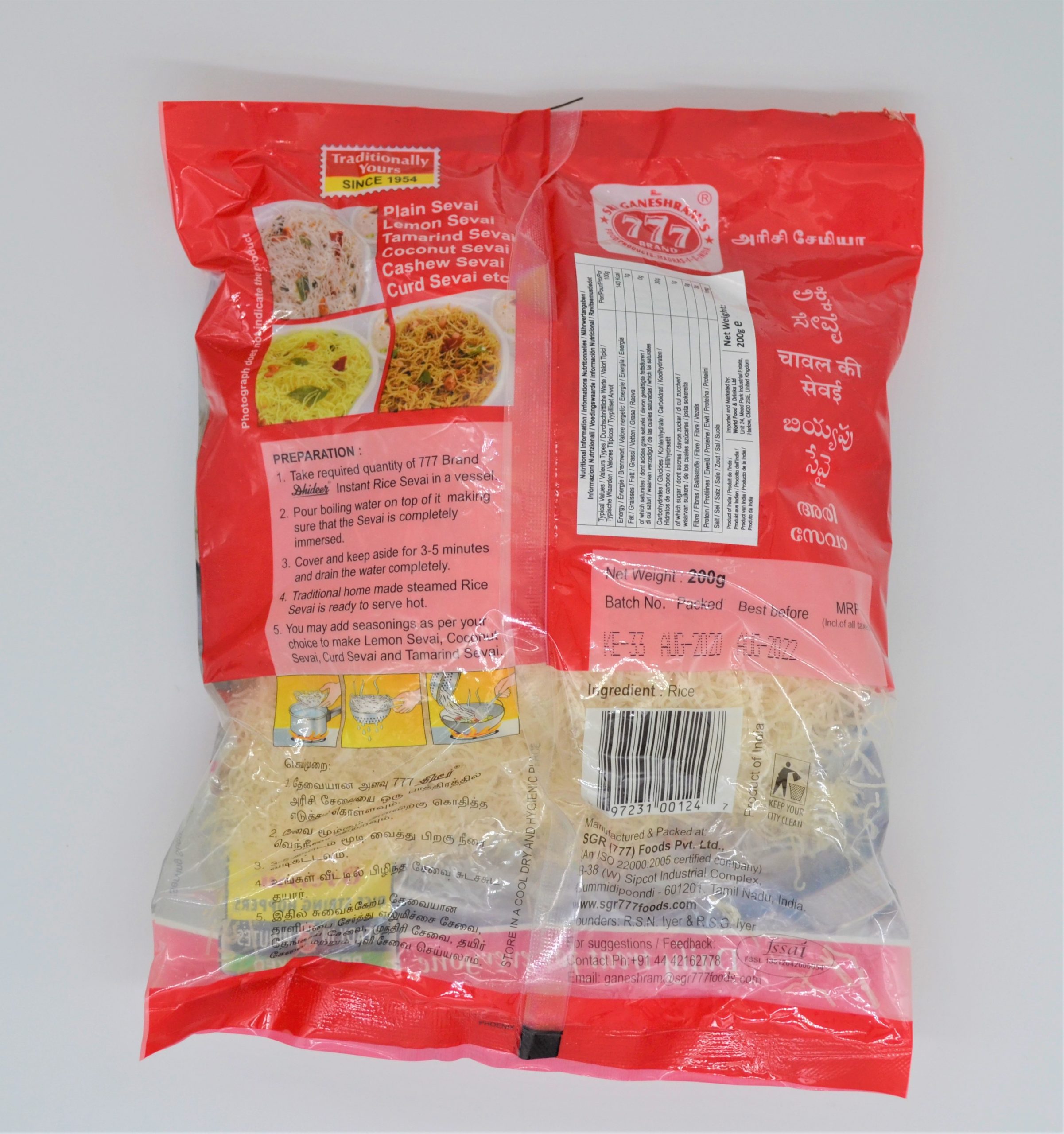 Sri Ganeshram’s 777 Brand Instant Rice Sevai. Pre-Cooked Rice Sevai Or String Hoppers Are A Blessing When You Have Unexpected Guests Or Are Too Tired To Cook.